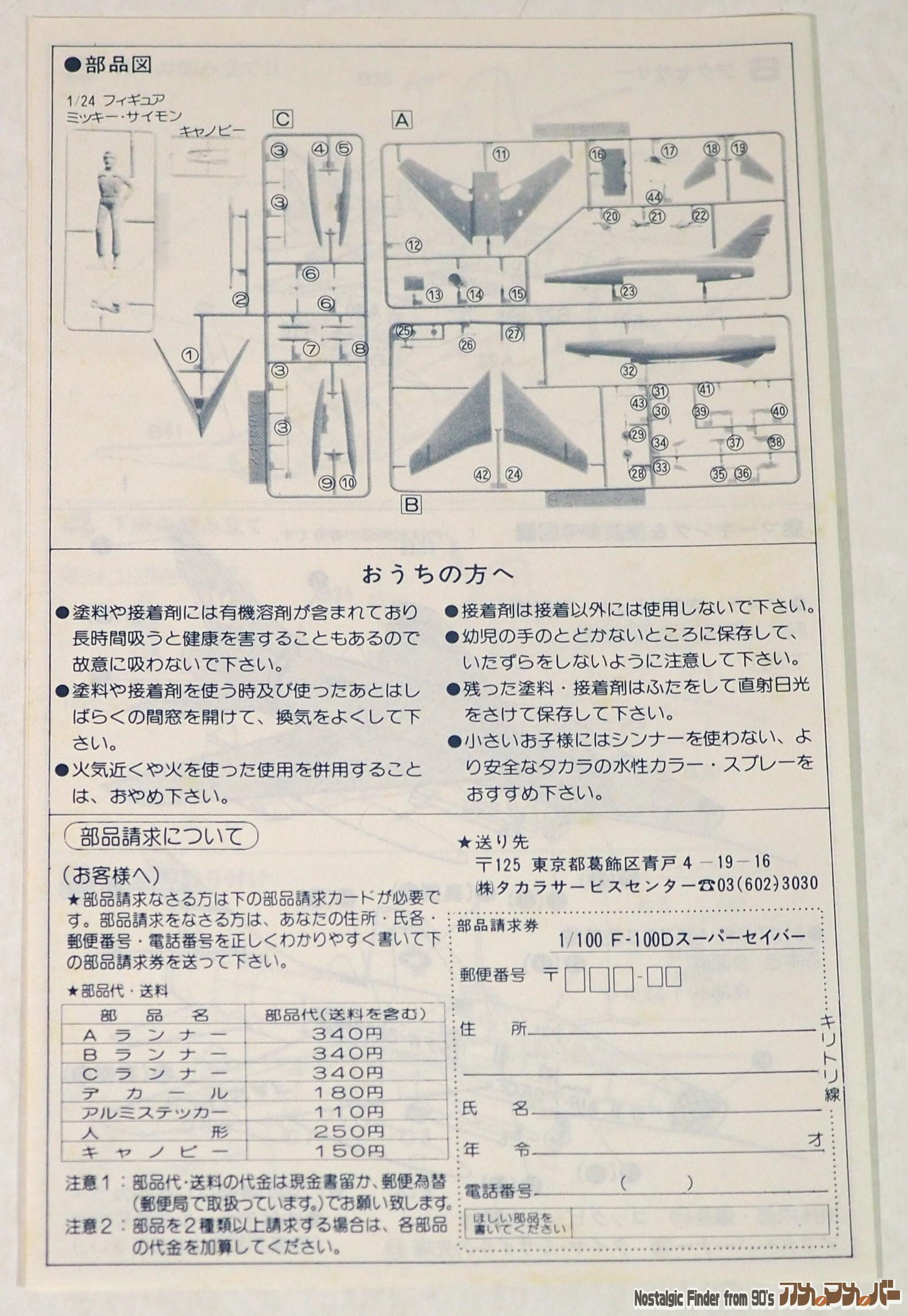 タカラ 1/100 エリア88 ミッキー専用 F-100D スーパーセイバー