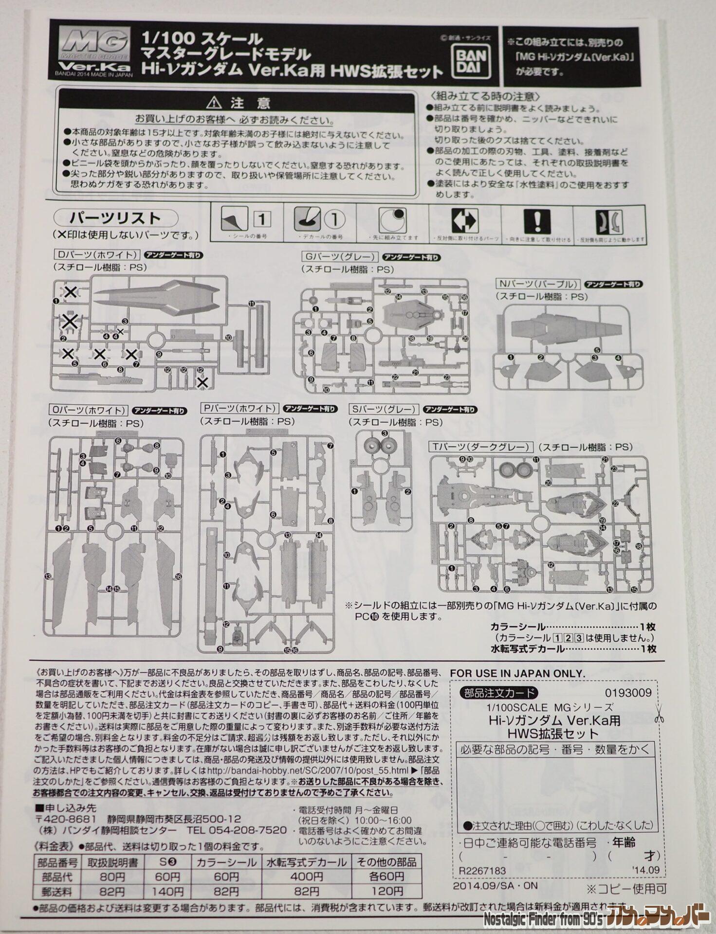 | H.W.S. EXPANSION SET FOR Hi-ν GUNDAM Ver.ka |