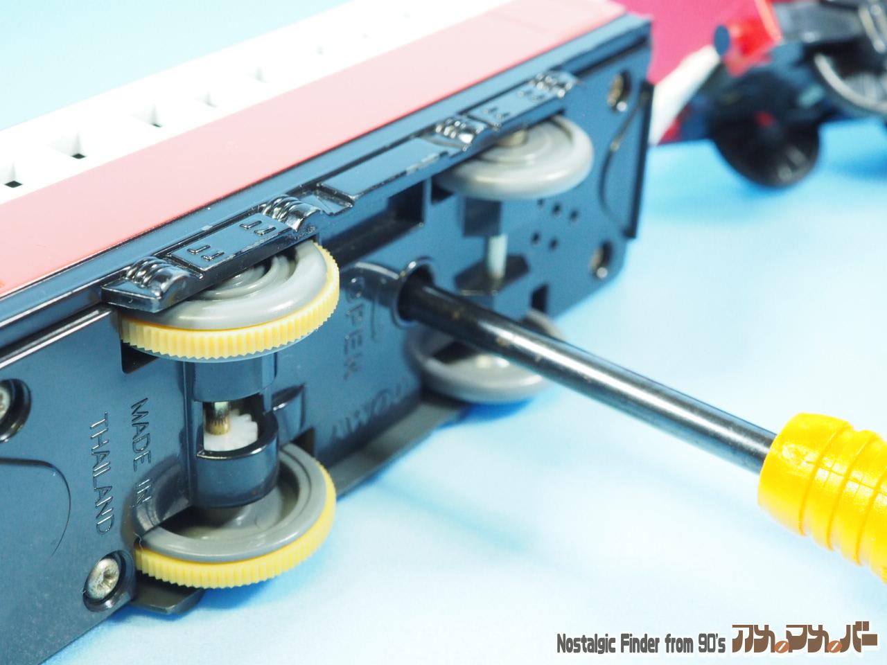 後続車の下部、中央にあるネジで電池蓋は止まっています。